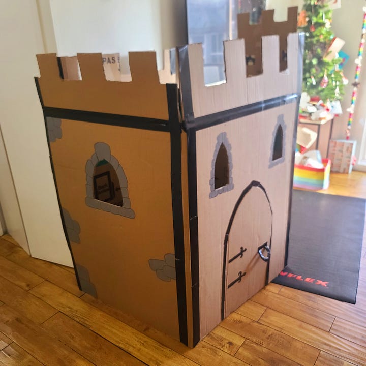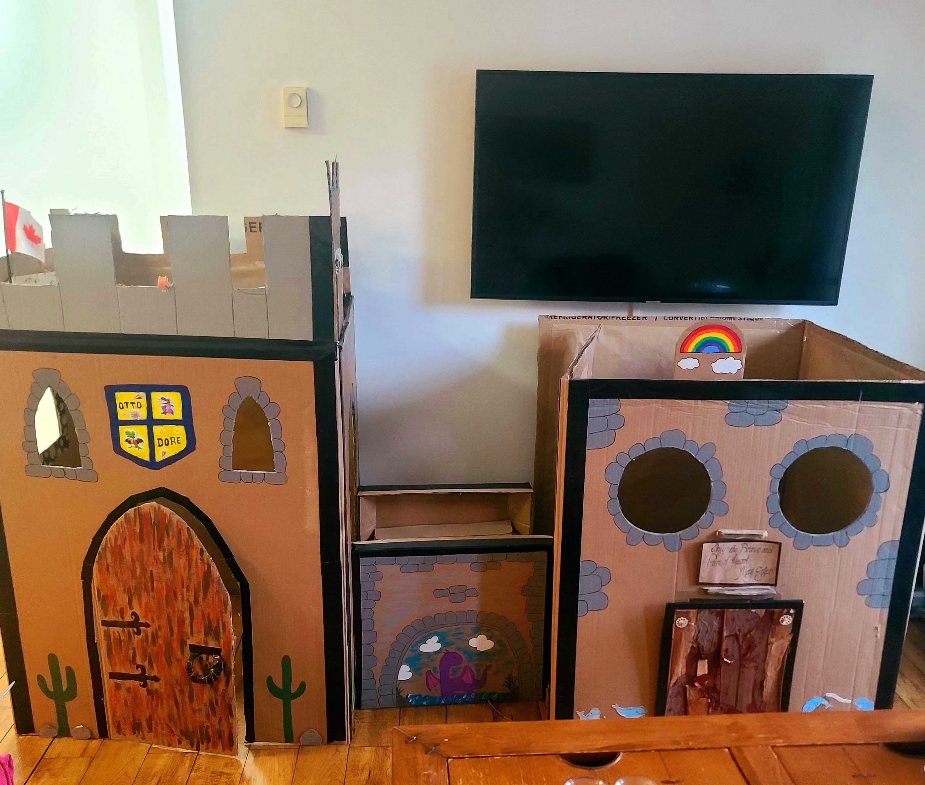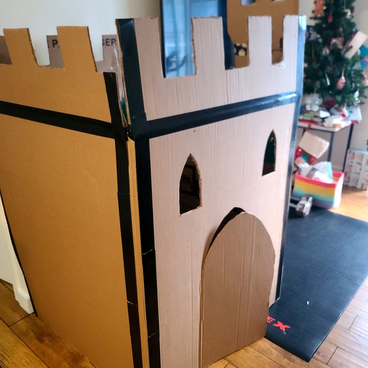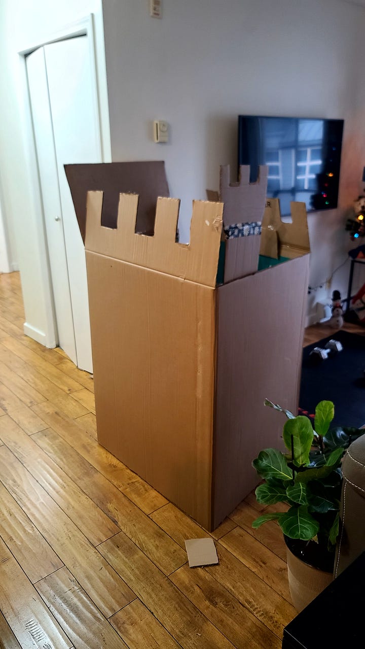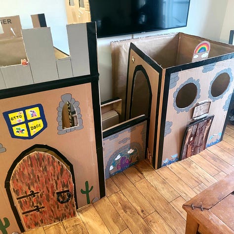 A couple of weeks before Christmas, I decided to make a cardboard box fort in preparation for an upcoming April visit from my two nephews, Theodore ( 4 years) and Otto (2 years). I’d never had a cardboard box anything when I was a kid and didn’t want them to miss out on the opportunity either. Although, who am I kidding, at 61 years old, the fort was as much for my inner 5 year old as it was for Theo and Otto.