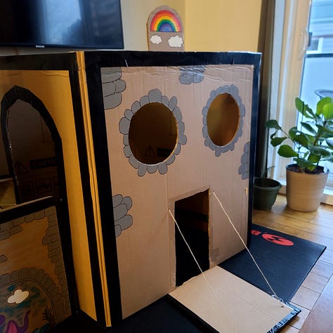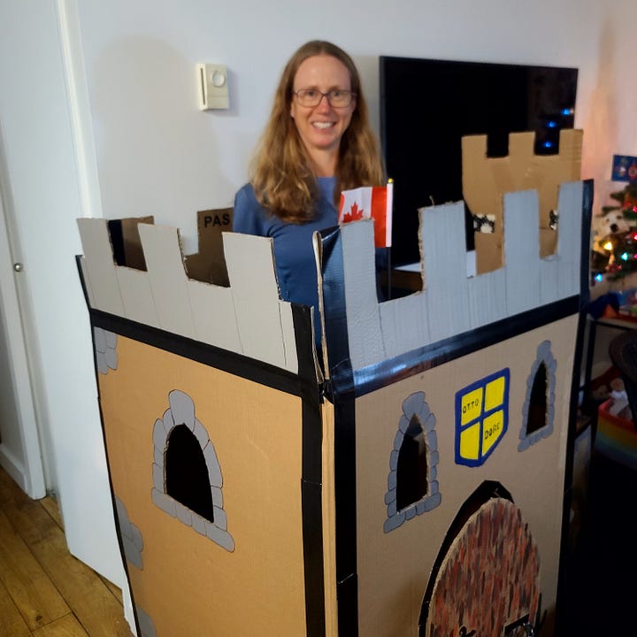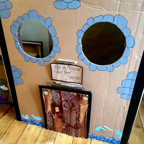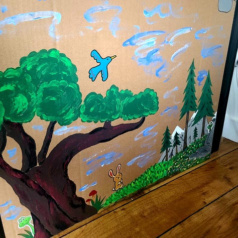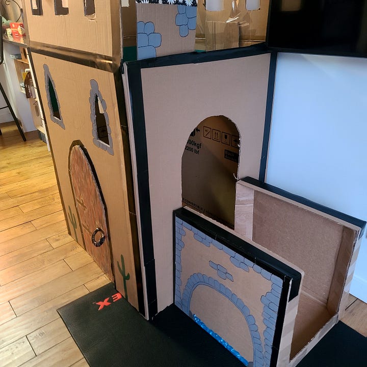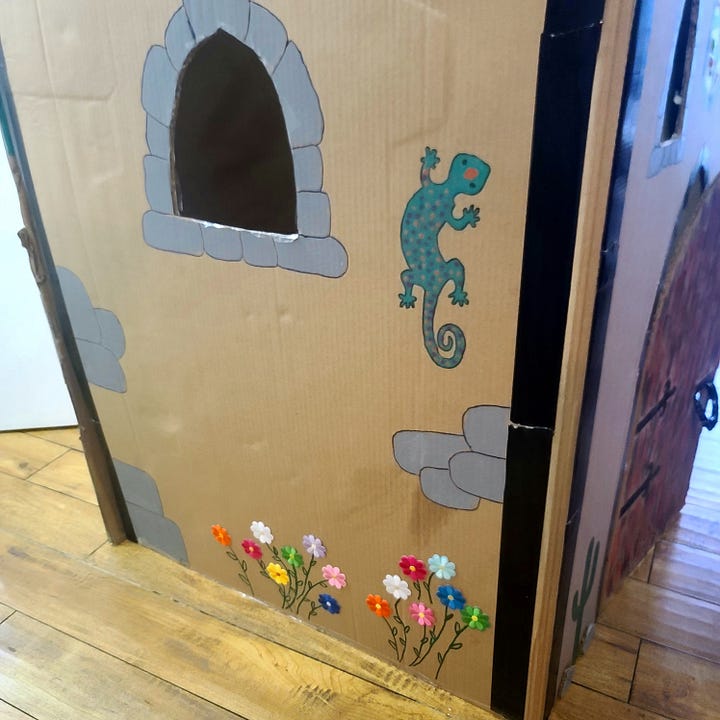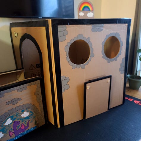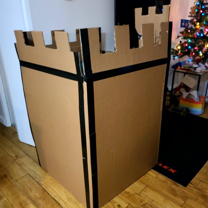 A couple of weeks before Christmas, I decided to make a cardboard box fort in preparation for an upcoming April visit from my two nephews, Theodore ( 4 years) and Otto (2 years). I’d never had a cardboard box anything when I was a kid and didn’t want them to miss out on the opportunity either. Although, who am I kidding, at 61 years old, the fort was as much for my inner 5 year old as it was for Theo and Otto.