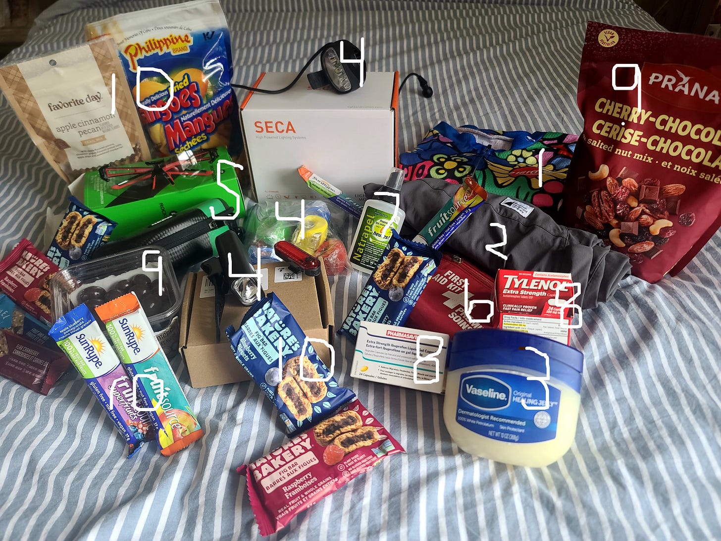 Extra-strength Tylenol and Ibuprofen: I expect that at some point, some body part is going to start to hurt. It’s simply a question as to which body part is going to complain first. Back? Shoulders? Triceps? These will hopefully help numb the pain that my superfun jersey can’t dispel.